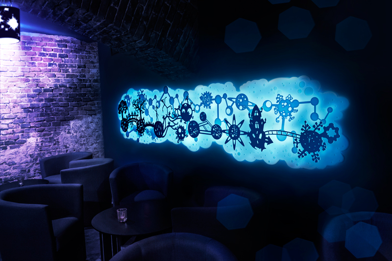 Projekt dekoracyjnych tablic świetlnych do wnętrza pubu.